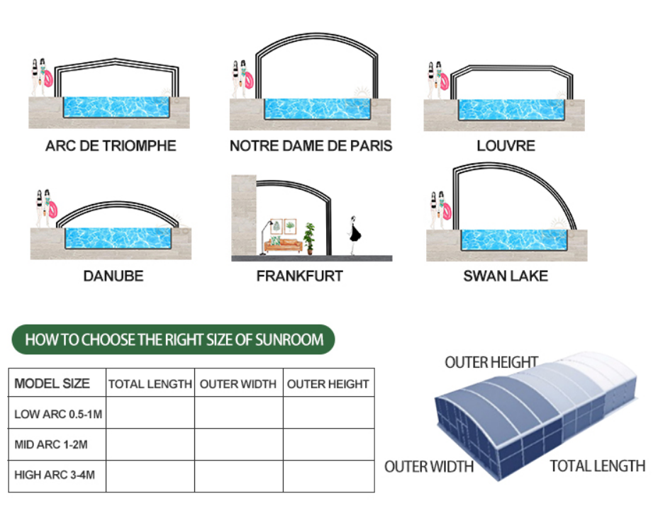 Roof parts and front wall/back wall consist either of 8mm strong doublesheeting polycarbonate or 4mm transparent solid parts.